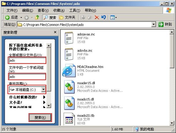 “C:\Program Files\Common Files\System\ado”目录
