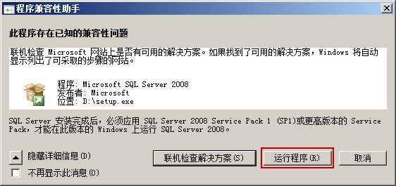 5) 在弹出的“程序兼容性助手”对话框中,单击“运行程序”按钮(如图 1‑5)。